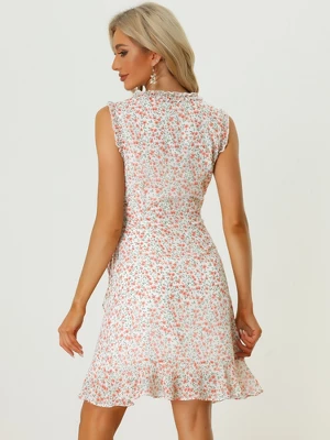 - The causal summer dress with cute ruffle sleeveless detail will make you look more beautiful and chic. Cross v-neck shows your neckline and clavicle perfectly
