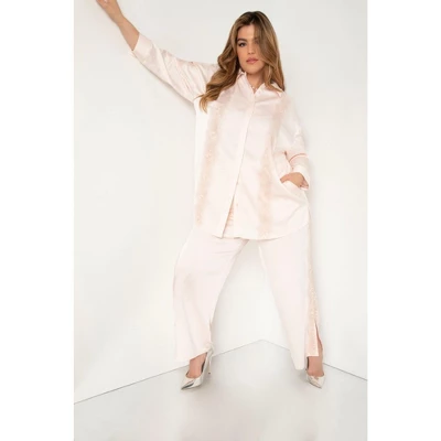 ELOQUII Women’s Plus Size Lace Detail Satin Wide Leg Pant