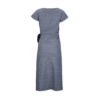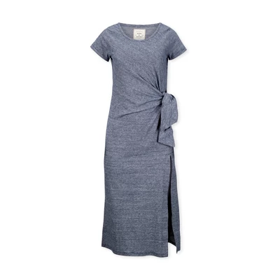 An easy maxi silhouette and organic cotton knit make this universally flattering dress a spring and summer staple. Features short sleeves, a rounded neckline, and a faux waist tie for that feminine touch. A subtle slit up the side is a special touch that shows just the right amount of leg.