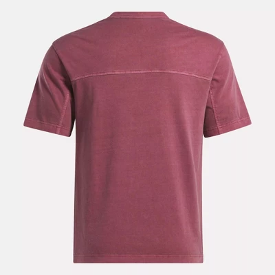 A new wash on your favorite Reebok t-shirt. Made of soft cotton and colored with a natural dye, it has drop shoulders that gives it a chill look. Put it on to hang out with friends or lounge around at home.