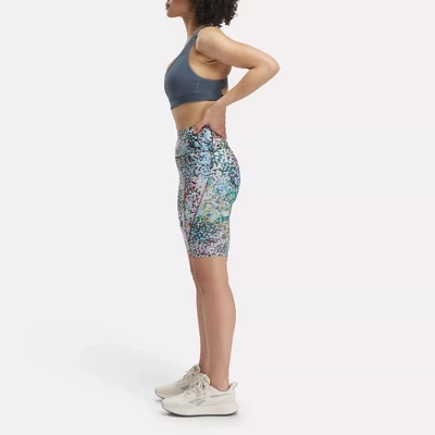 Wear these women’s Reebok shorts on days when you’re ready to crush it. Speedwick keeps you dry as you work the heavy bag or do sprints on the bike, while MOTIONFRESH technology helps eliminate odor. A high-rise waistband with power mesh hugs you in and stays in place. The bold animal print represents a modern take on safari-inspired style.