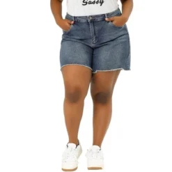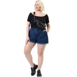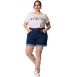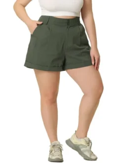 Agnes Orinda Women’s Plus Size Shorts Floral Straight Slash Pocket Lace Trim Elastic Waist Pants