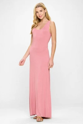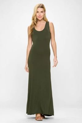 This knit maxi dress is ankle length and has a racerback detail. This flattering silhouette skims your body and is comfortable for all-day wear. Made in USA. Material – 95% Rayon Modal 5% Spandex. Machine washable.