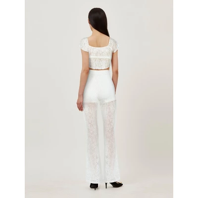 Turn heads and make a statement in our Lace Flare Pant. Constructed from stretch lace with a soft jersey lining, the flared leg, elastic waist, and vintage-inspired fit, deliver all the romantic details you love with the comfort you need. Wear with tees, denim shirts, tanks, or go head-to-toe with our Layered Lace Tee.