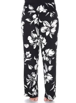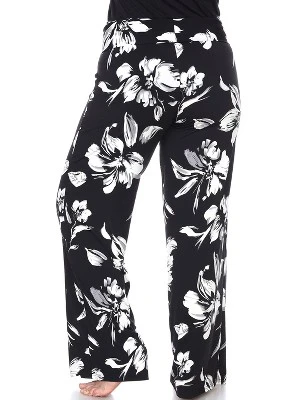 Women’s Plus Size Flower Printed Palazzo Pants – White Mark