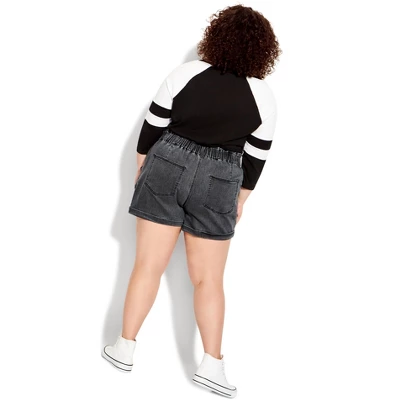 Show them what you’re made of in the black Hannah Short. Kicking your style up a notch, these stretch denim shorts are oh-so on-trend with their rolled cuffs and waist-enhancing ruching.Societie+ is the youthful urban aesthetic youÂ’re looking for, with tops, denim and cozy loungewear to add to your everyday wardrobe. This streetwear inspired label is designed with your curves in mind, ensuring effortless off-duty style comes with ease. Edgy, playful and packed full of attitude, Societie+ does casual styling oh-so-right. A youth brand designed to love curves, Societie+ offers distressed denim, playful dresses, loungewear and more. Off-duty and on-trend, find your perfect OOTD with Societie+! Available in sizes 12 – 32.